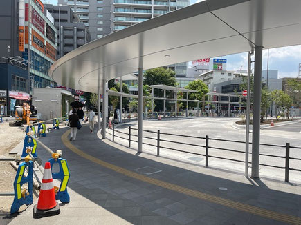 バスロータリーの屋根の下を向こう側まで歩いてください。